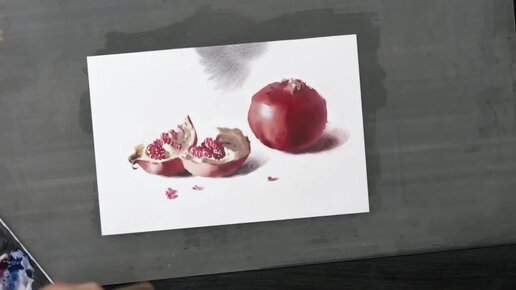 Рисование акварелью. Натюрморт с гранатом. Ускоренное видео