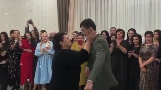 Кавказец танцует с мамой на своей свадьбе.Подарил ей в танце цветы