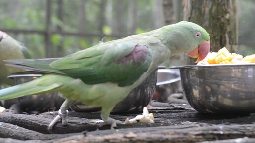 Попугай-гурман выбрасывает из кормушки нелюбимые фрукты