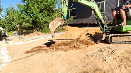 Как подготавливается основание под укладку тротуарной плитки. 6 день. Работа с мини экскаватором