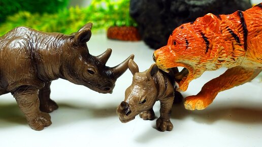 Приключения Животных. Непослушный Носорог убегает от Тигра и Леопарда! Животные для детей Игрушки ТВ