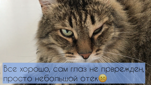 Кота укусили в глаз, опухло веко
