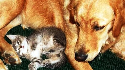 Потеряв своих щенков, собака выкормила котенка