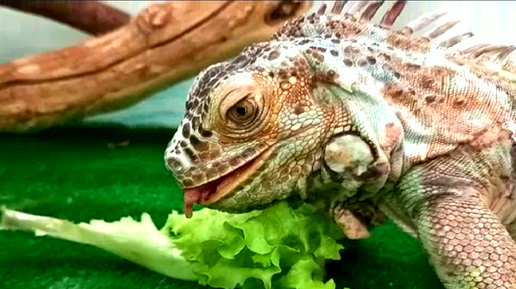 Игуана лакомится салатом