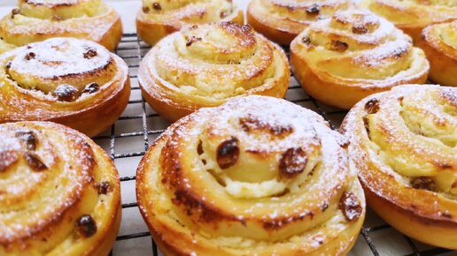 Булочки “Завитушки” с творогом и изюмом. Сдобные булочки. Дрожжевое тесто без яиц