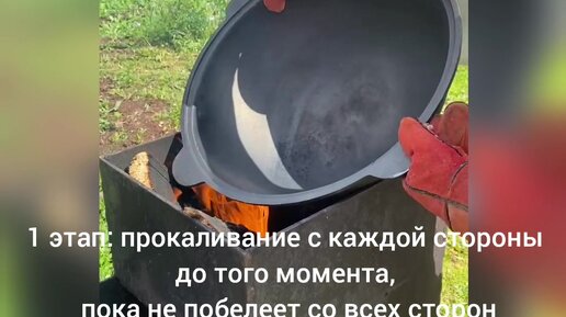 Как обжечь новый чугунный казан после покупки, показываю
