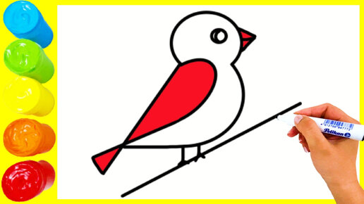 Как нарисовать Птичку. Мультик раскраска для детей. Учимся рисовать простые рисунки для детей.