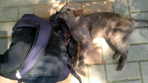Серому понравился мой рюкзак и он прилёг отдохнуть в тени