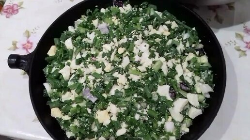 Вкусный пирог с зелёным луком и яйцами.