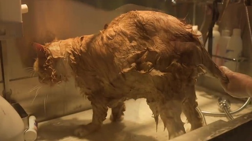 Как купать кошку мейн-кун.