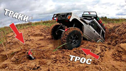 Вытащит ли себя из ямы Nissan Patrol 4x4 с сэнд-траками и тросом. RC Offroad