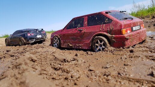 NISSAN GTR вытаскивает ВАЗ 2108 из грязи ... OFFroad 4x4 на пузотерках