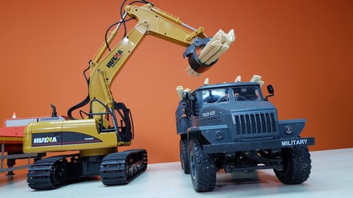 Загружаем Урал 4320 с помощью экскаватора на радиоуправлении Huina 1570