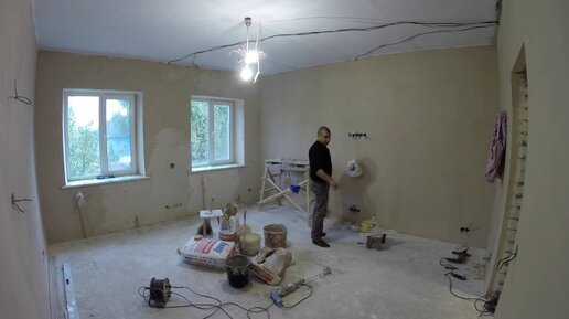 ✅Частный дом - ремонт день #72 Штукатурка стен и проводка в коридоре