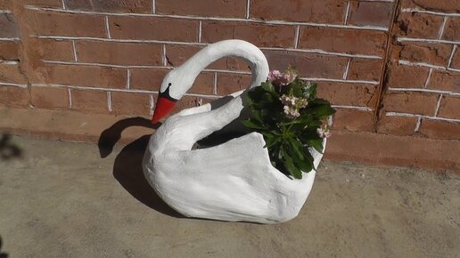 Вазон для цветов из бетона своими руками - Лебедь