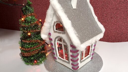 ДЕЛАЕМ НОВОГОДНИЙ ДОМИК ИЗ КАРТОНА И ФОАМИРАНА С ПОДСВЕТКОЙ