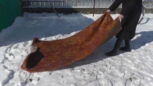 Как почистить ковер снегом?