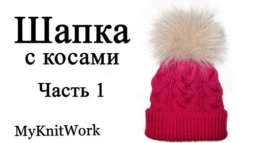 Шапка объемными косами с отворотом. Вязание спицами. часть 1.