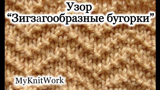 Вязание спицами. Узор Зигзагообразные бугорки из лицевых и изнаночных петель.