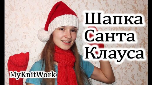 Шапка Санта Клауса. Новогодняя шапка спицами.