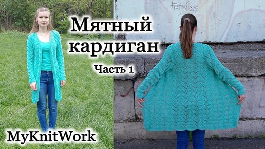 Мятный ажурный кардиган спицами. Вязание кардигана. Часть 1.