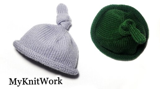 Шапочка с узелком для новорожденного. Шапочка для фотосессии. Вязание спицами.