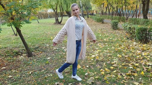 Вяжем рукав узором соты. Объемный кардиган лицевой гладью. #вязаниеспицами #вязаныйкардиган
