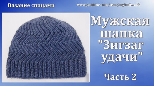 Вязание спицами. Мужская Шапка Зигзаг удачи. Часть 2.
