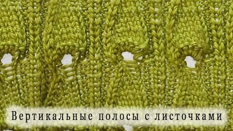 Вязание спицами. Узор Вертикальные полосы с листочками