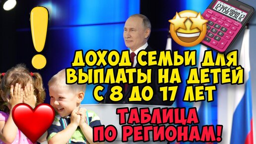Каким должен быть доход для выплаты на детей с 8 до 17 лет с 1 июля. Таблица по регионам.