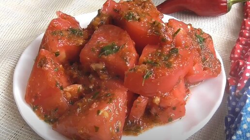Как я готовлю в контейнере закусочные помидоры быстрым способом (вкусно, подаю как закуску и как гарнир к шашлыкам)