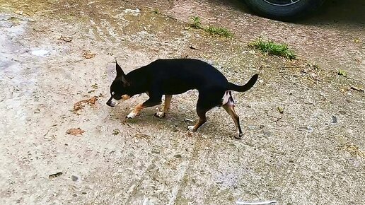 Роза на прогулке обнюхивала кустики и на меня не обращала внимания