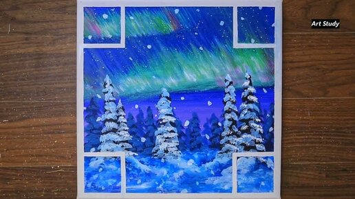 "Зимний лес" Необычная акриловая картина