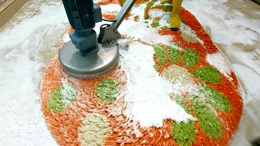 190 оборотов в минуту: щетка мощно напенивает и прочищает длинный ворс яркого ковра / Залипательно