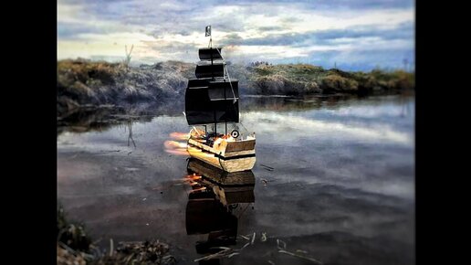 Гибель пиратского стреляющего корабля на воде.