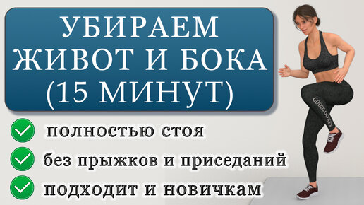 Убираем живот и бока: жиросжигающая тренировка стоя на 15 минут (для любого уровня)
