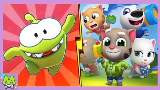 Говорящий Том Всплеск Силы vs Ам Ням Паркур.Забег по Крышам и Битва с Енотами.Какая Игра Круче