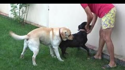 Знакомство лабрадоров Тэо и Альмы. Будут щенки.