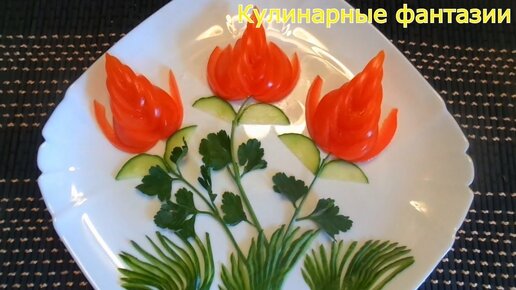 Как красиво нарезать огурцы и помидоры! Украшения из овощей! Карвинг