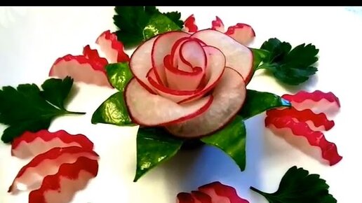 How To Make Radish Rose Flower - Cucumber Garnish Design & Vegetable Carving - Art In Radish Cutting