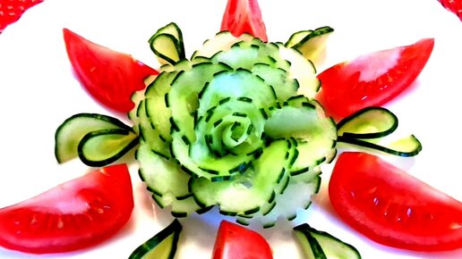 How To Make Cucumber Rose Flower Design - Tomato Garnish & Vegetable Carving - Art In Cucumber