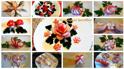 15 Лайфхаков КАК Красиво Нарезать Редис! Украшения Из Овощей!