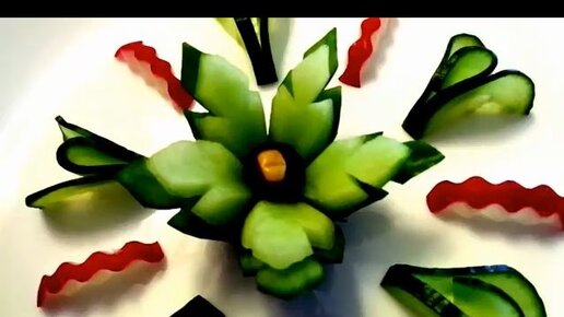 How To Make Cucumber Flower - Radish Design - Pepper Garnish & Vegetable Carving - Art In Cucumber