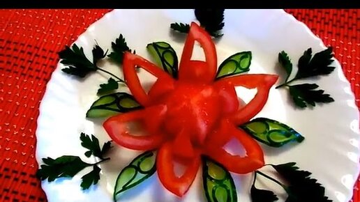 How To Make Tomato Flower Art - Cucumber Design Cutting & Vegetable Carving - Tomato Garnish