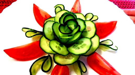 How To Make Cucumber Flower - Carrot Rose - Art In Cucumber Design Garnish & Vegetable Carving