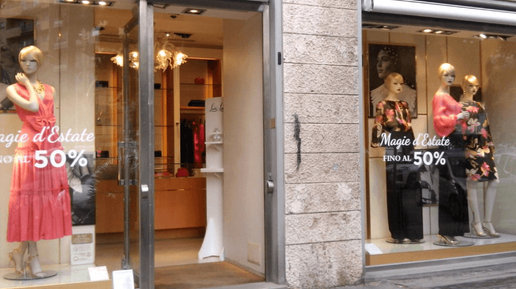 Рим. Магазин дорогого платья, в котором уже начались скидки