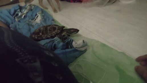 Алекс - красноухая черепаха вновь на прогулке, опять пытается вести себя как собачка)