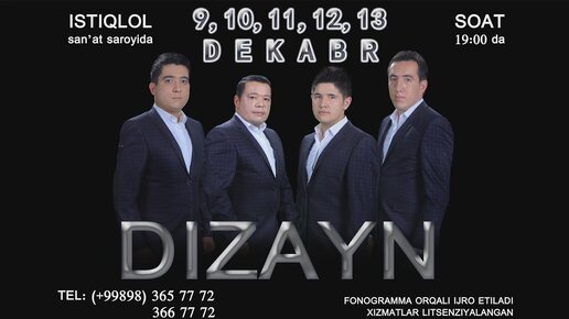 Afisha - Dizayn Shou 9-10-11-12-13-dekabir kunlari konsert beradi 2015