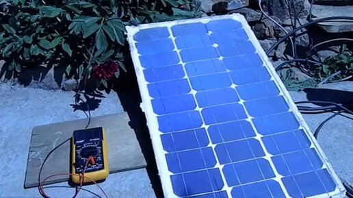 Тестирование самодельной солнечной батареи с линзой Френеля.