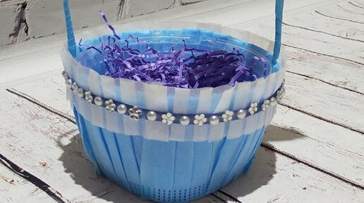 Медицинские маски можно не только на лице носить, из них и поделки можно делать. Декор корзинки медицинскими масками